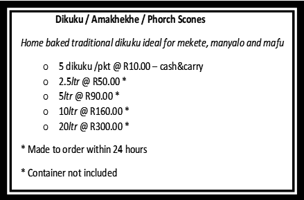 Home baked traditional dikuku ideal for mekete, manyalo and mafu